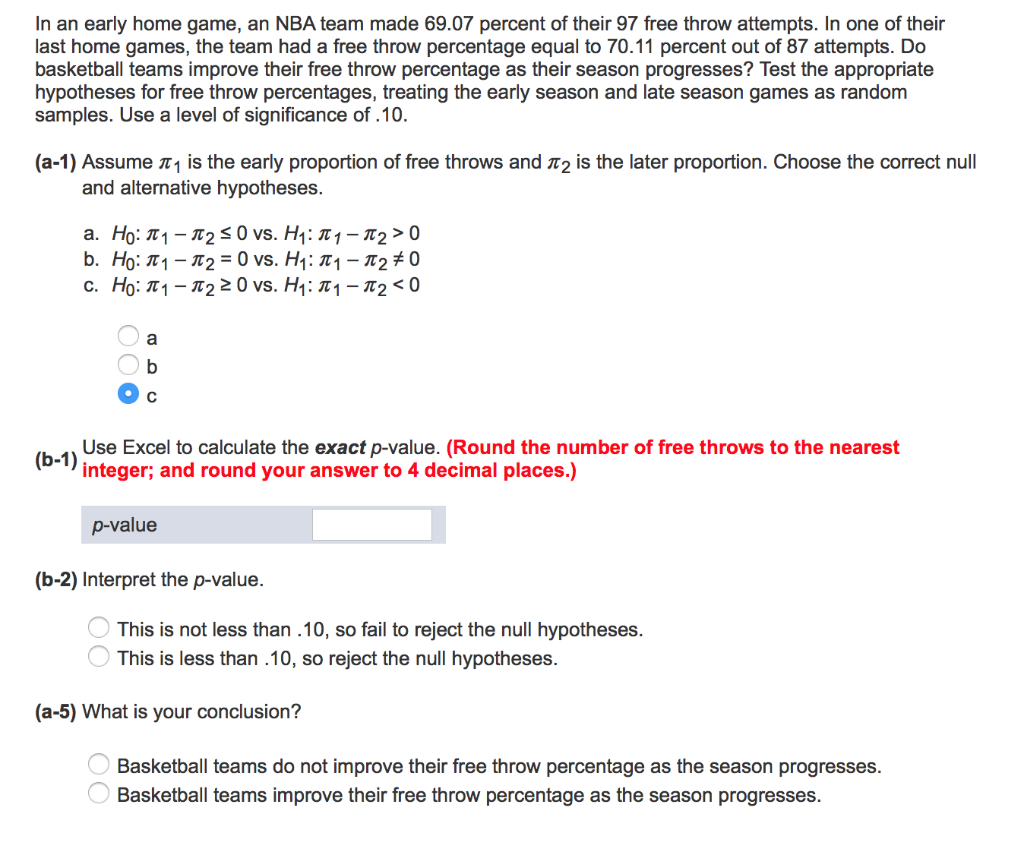 Solved In An Early Home Game An Nba Team Made 69 07 Percent Chegg Com