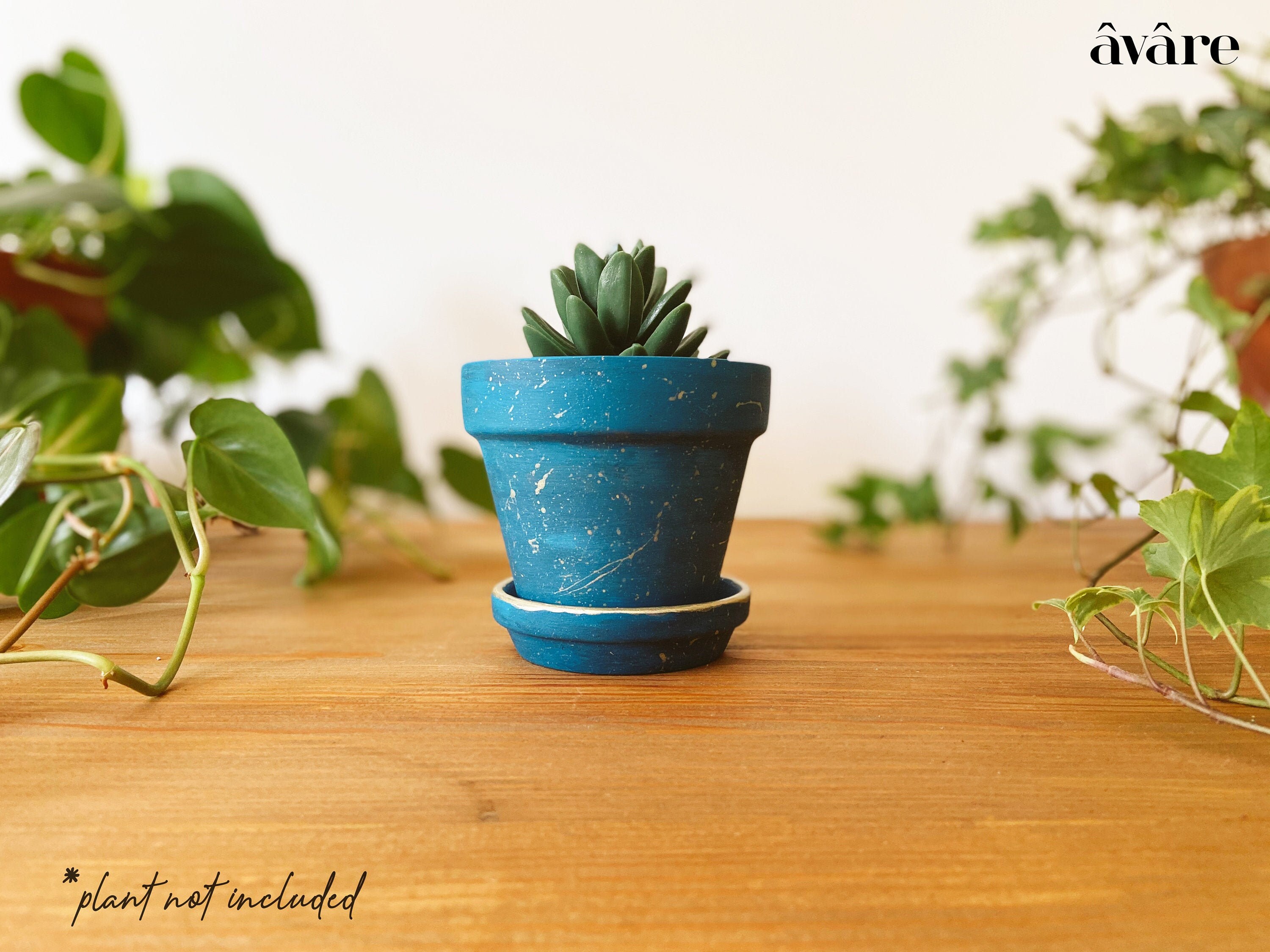 Hand Painted Planter Turquoise Speckled Terracotta Pot Etsy De